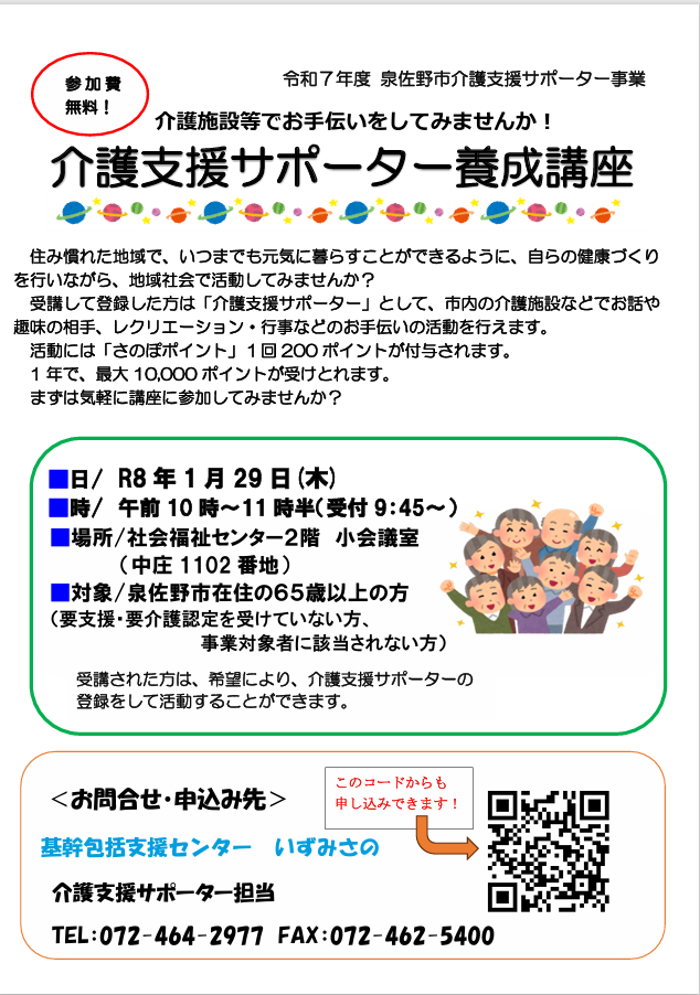 ご相談・問合先/基幹包括支援センターいずみさの ☎ 072-464-2977