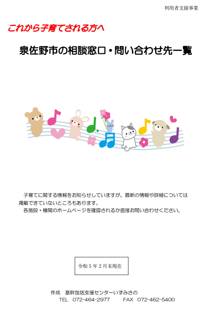 『これから子育てされる方へ 泉佐野市の相談窓口・問い合わせ先一覧』①表紙