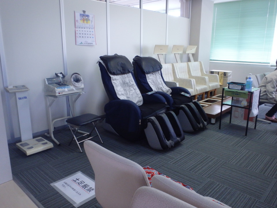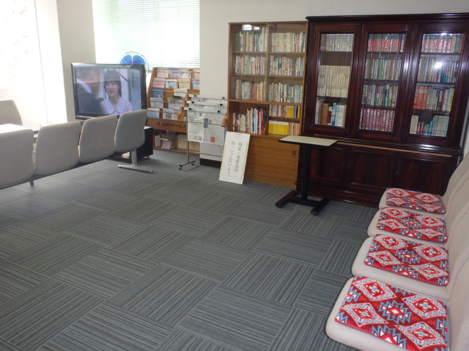 2階ロビーにはテレビ、新聞・書籍や雑誌、マッサージチェアー、ヘルストロンなどを備え付けています。