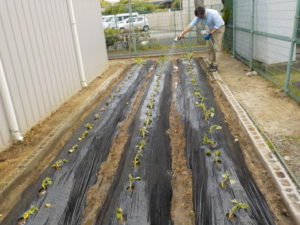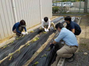 今後の作業や収穫は一緒にできることを願いながら、「大きくなあれ」の思いを込めて植えました!