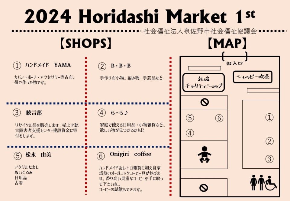 誰でも参加できる屋内フリーマーケット「掘り出し市」を令和6年度も開催します。