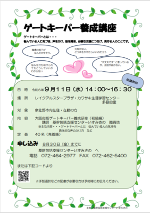 内容:大阪府版ゲートキーパー養成研修(初級編)