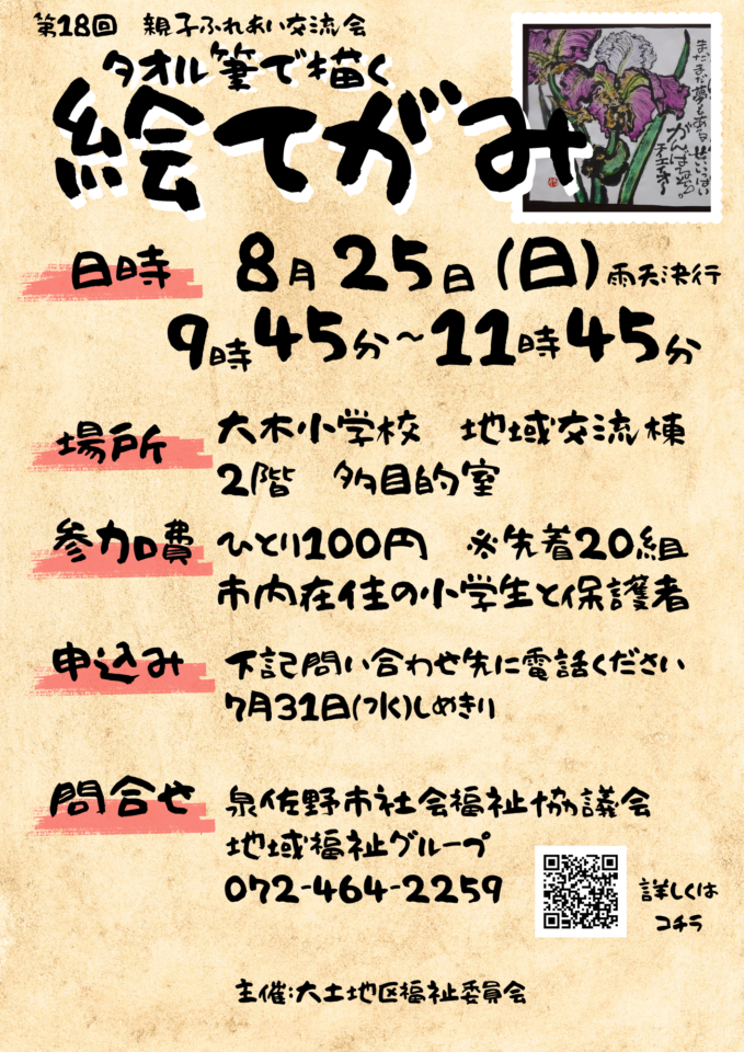 今回は、、、「 タオル筆で絵手紙を描こう! 」をテーマに開催します!