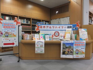 9月の『世界アルツハイマー月間』にちなんで、9月1日~30日まで、図書館で、認知症にまつわる本の展示と認知症支援や活動に関するパンフレットなどを置いています(パンフレットやチラシはご自由にお持ち帰りいただけます)。来館された際は、ぜひ図書館の展示コーナーをご覧になってください。