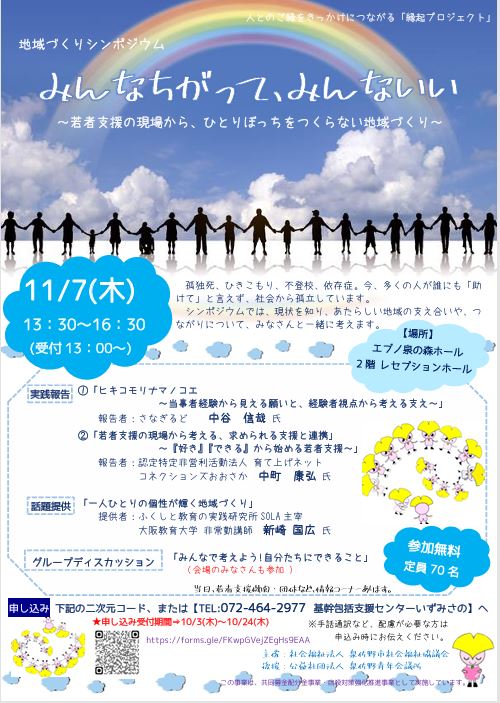 「みんなちがって みんないい ~若者支援の現場から、ひとりぼっちをつくらない地域づくり~」を開催します。
